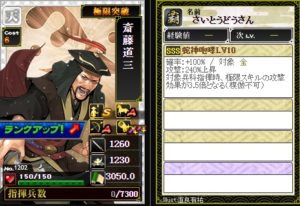 道三のS2は覇王征軍なので、ランクUP素材を使うと覇王が候補に。