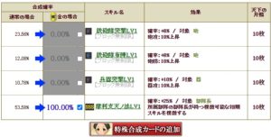 S2合成は、通常枠なら極限突破素材1枚で100%に。