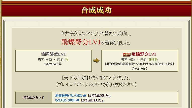 捨てスキルは合成元に槍襲撃、素材に槍堅守(槍進撃でも可)を合わせて、