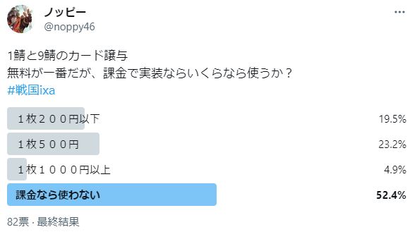 前回の覇の譲与1枚2000円のような金額設定は、ユーザーの理解は得られなさそうです。
